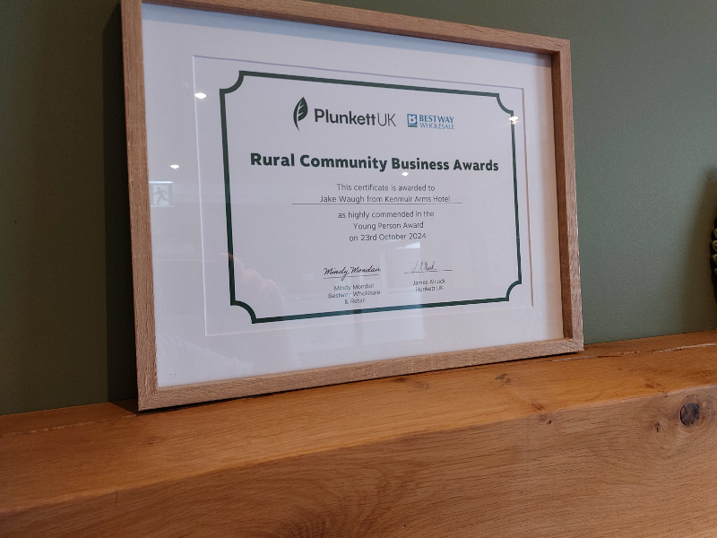 I also spoke with Jake, whom I’d met the previous year at our Rural Community Business Awards in London, where he was runner up in the Young Person Award. A local teenager, he started working at the pub at just 14. He told me he’s naturally shy, but working at The Kenmuir Arms has helped him grow enormously in confidence. He proudly shared that he has now applied to join the army, and said he wouldn’t have had the confidence to do so without his experience at the pub.