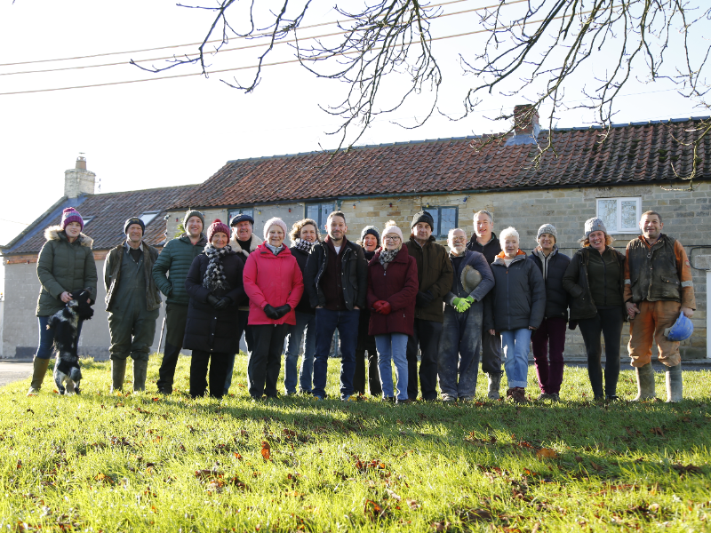 Locals outside the Plough, Fadmoor with comedian Jon Richardson (centre)